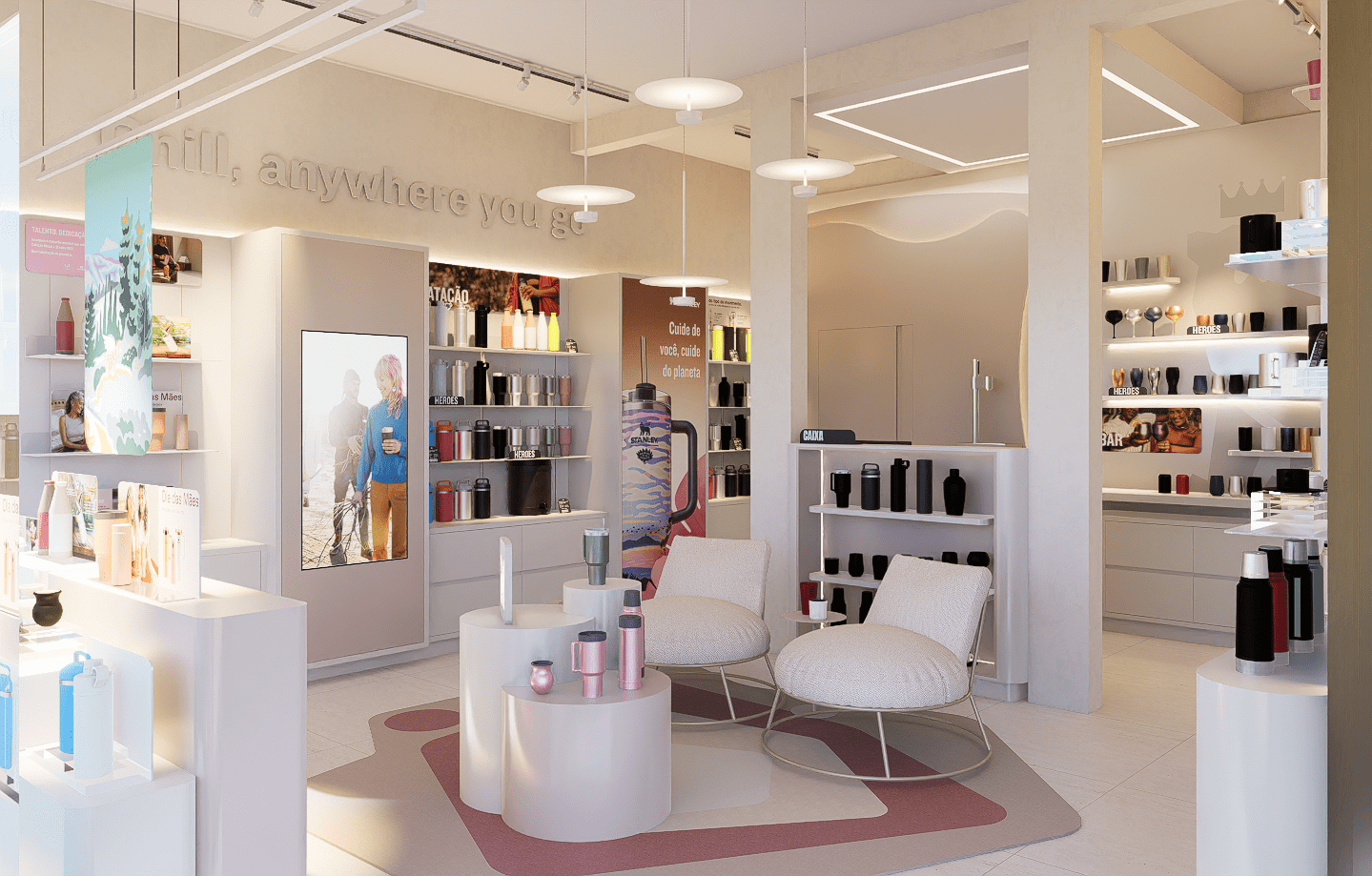Em cada detalhe, o ambiente reforça os pilares da marca: inovação, cuidado, brasilidade e conexão.
