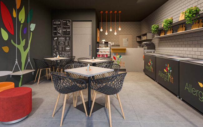 Allergofit é uma franquia de alimentação zero glúten e zero lactose que conta a história do desafio alimentar de um celíaco. O projeto apresenta um conceito único que representa a marca e que será o padrão arquitetônico em seu processo de expansão por franquias.