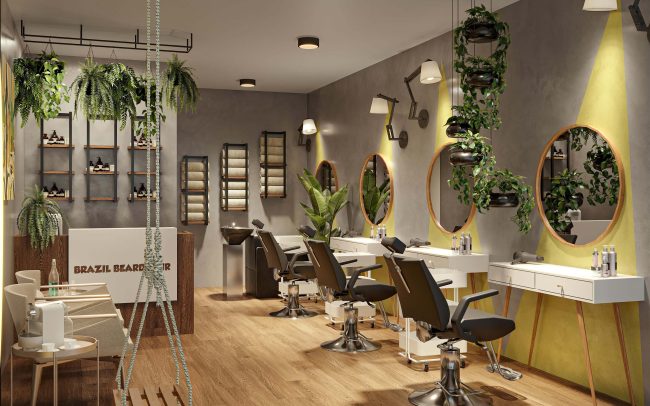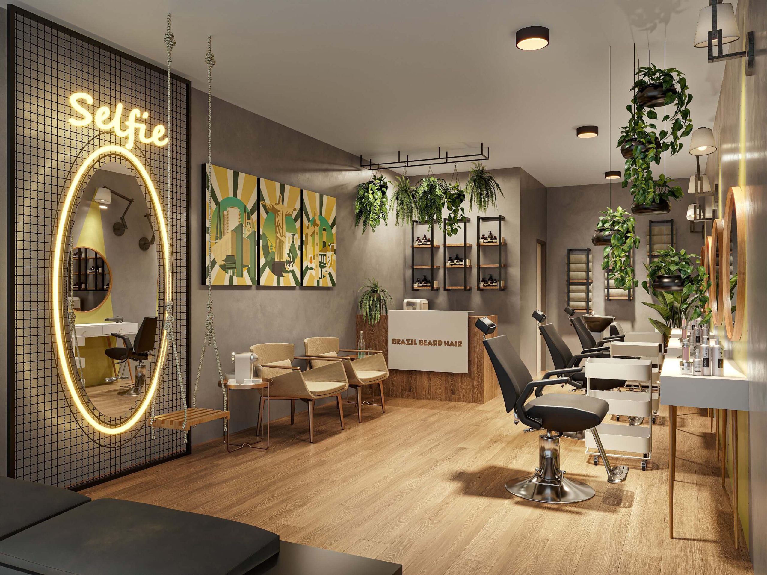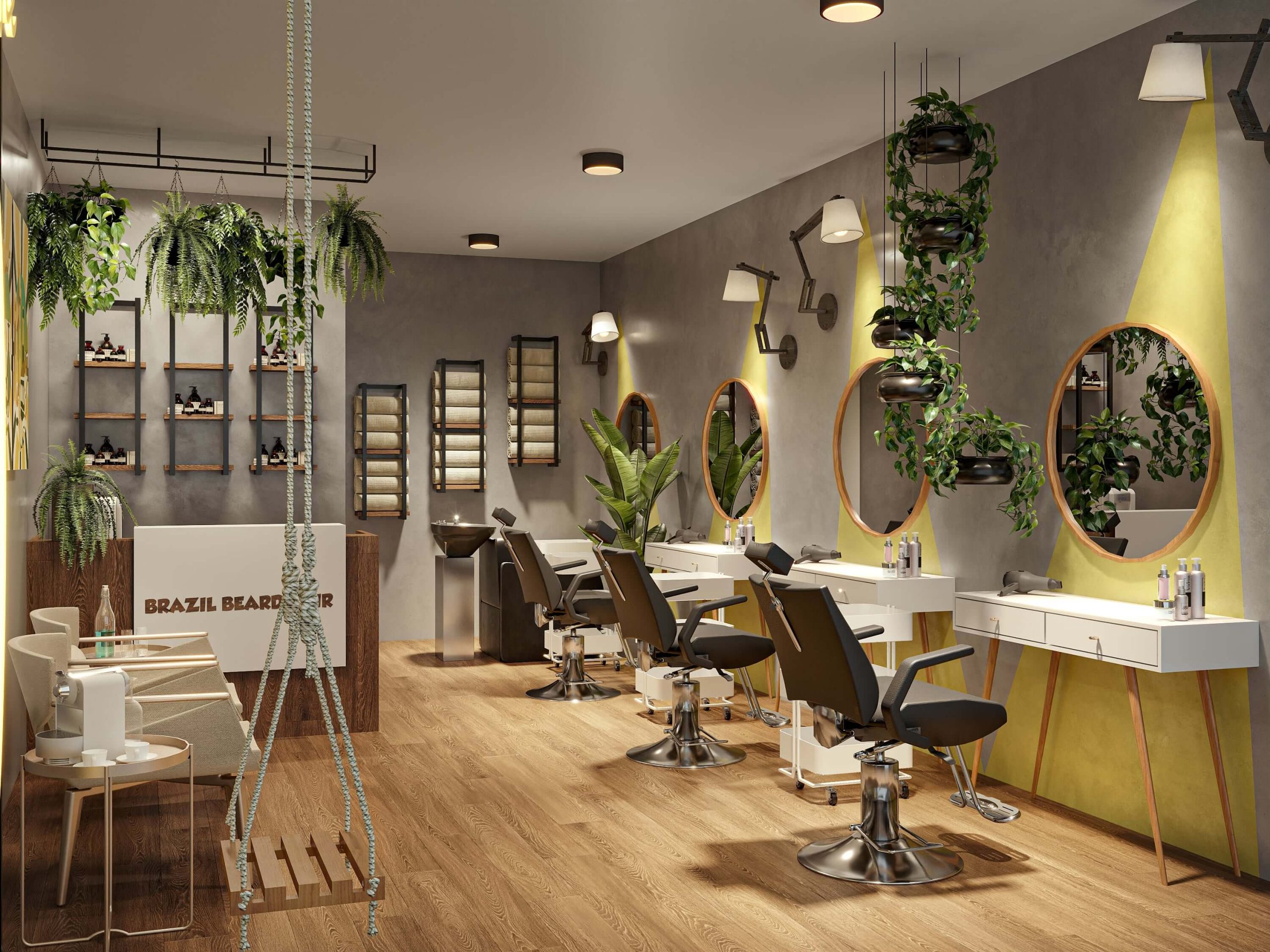 Brazil Beard Hair é uma barbearia que tem por objetivo trazer leveza para um espaço que geralmente é totalmente direcionado ao homem e trazer a família brasileira que busca conforto para dentro do seu espaço. Através de elementos que representam o Brasil e de uma ambientação com plantas e verde, a BBH é um ambiente contemporâneo e cheio de estilo.