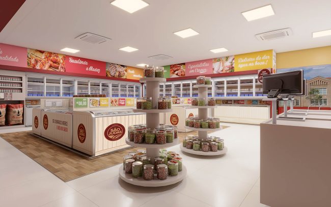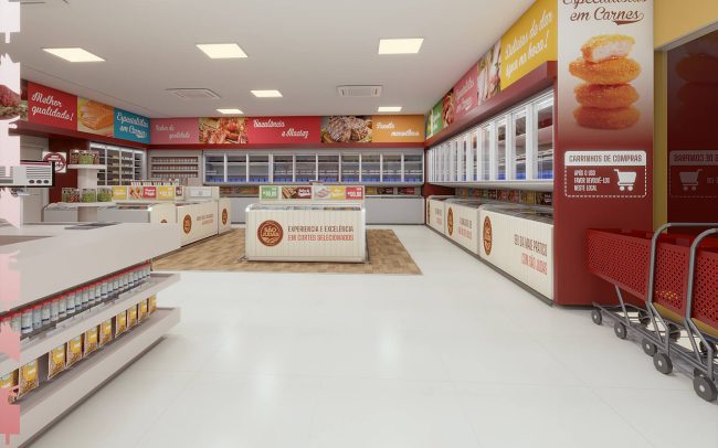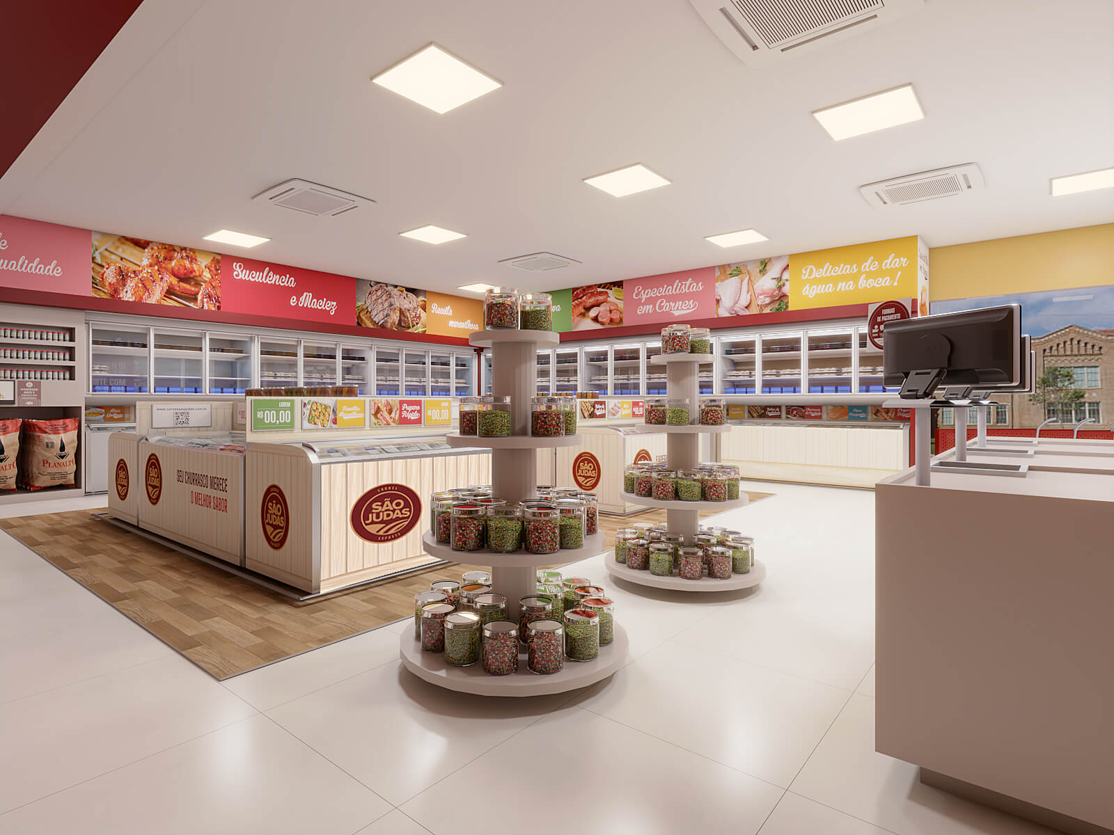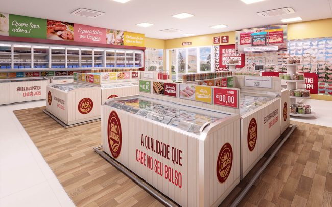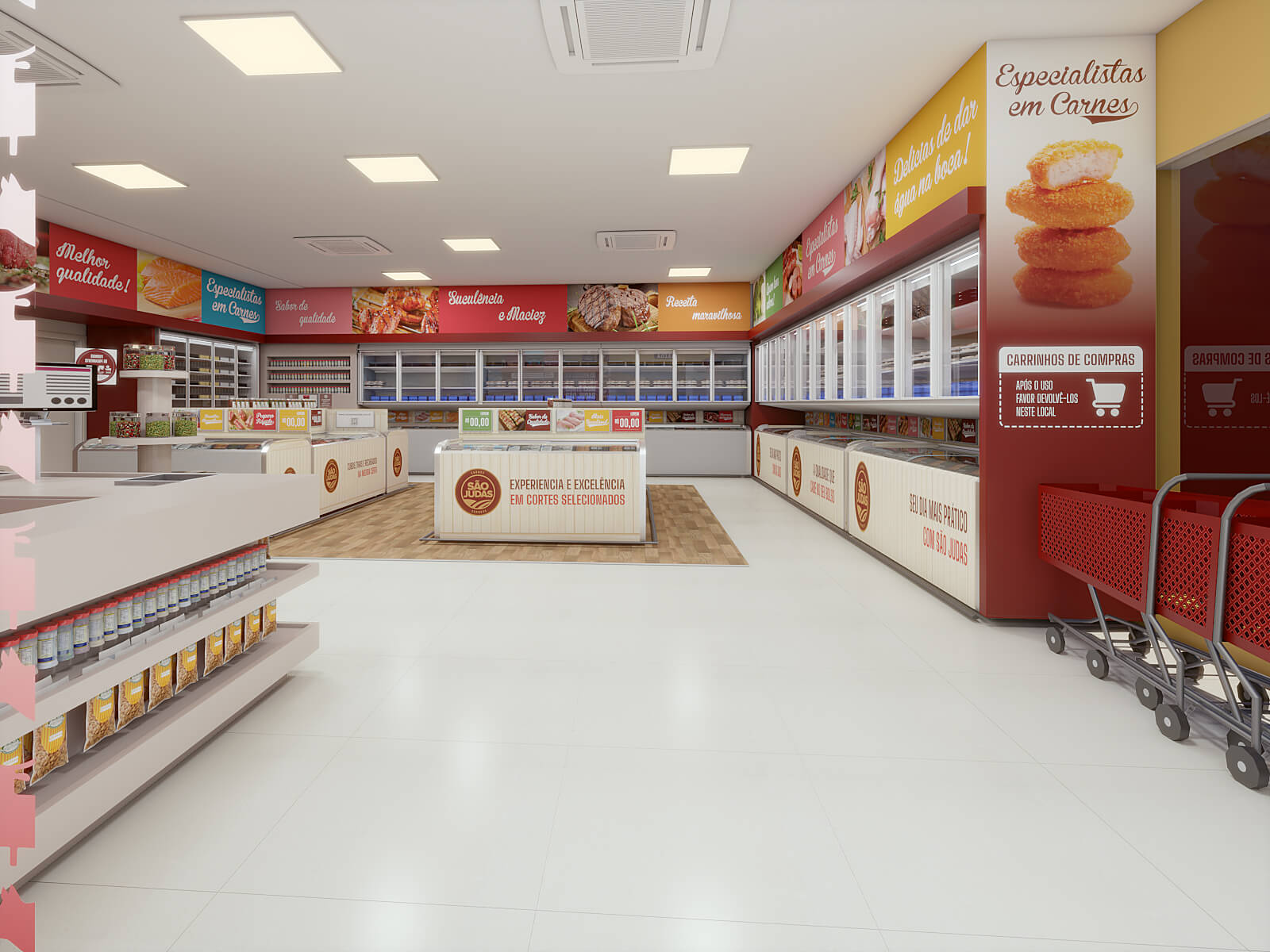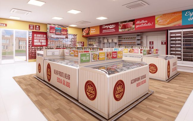 O açougue Carnes São Judas buscou uma arquitetura de qualidade, estratégica e que faria o estabelecimento se comunicar melhor com os clientes para vender mais. Para isso foi utilizado como estratégia a comunicação visual e um sistema de cartazeamento eficiente que permite que o PDV esteja sempre atualizado e completo.