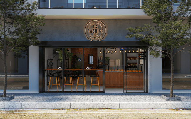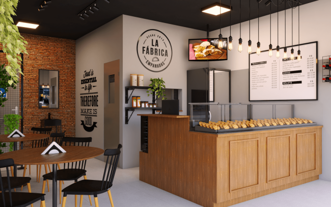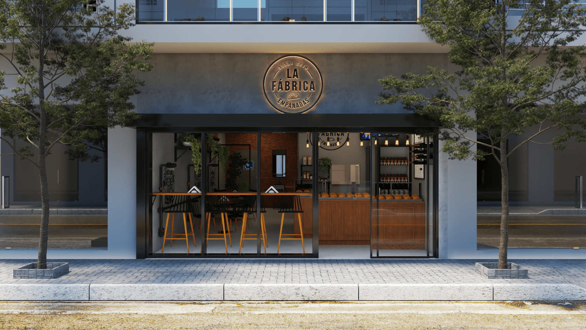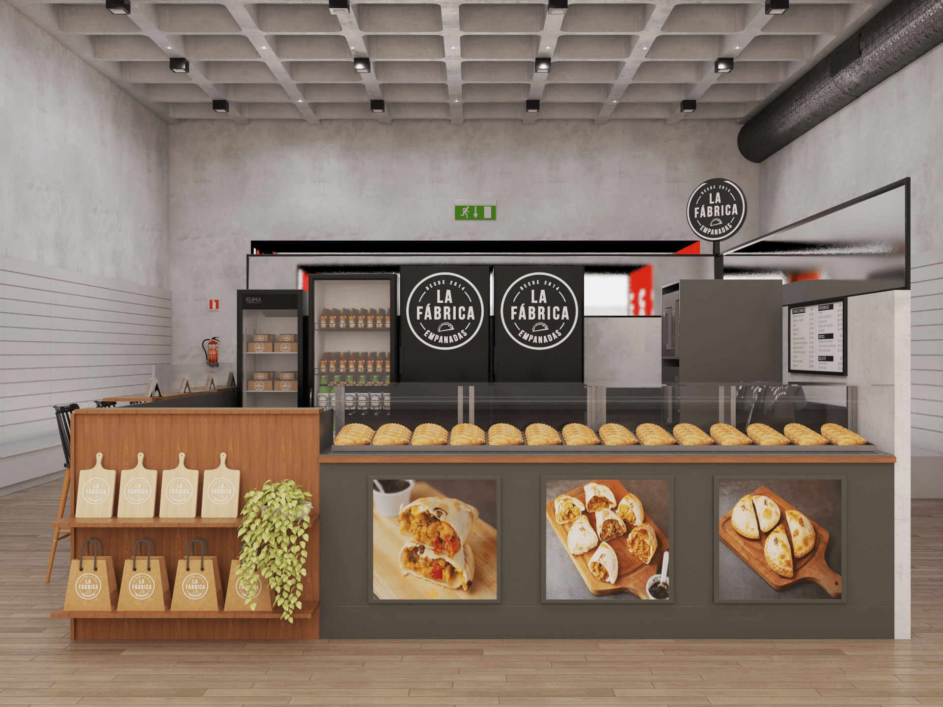 La Fabrica é uma casa de empanadas com temática industrial. Durante seu processo de formatação de franquias, passou por uma estruturação arquitetônica que definiu o conceito arquitetônico dos seus dois tipos de modelo de negócio: salão e quiosque.