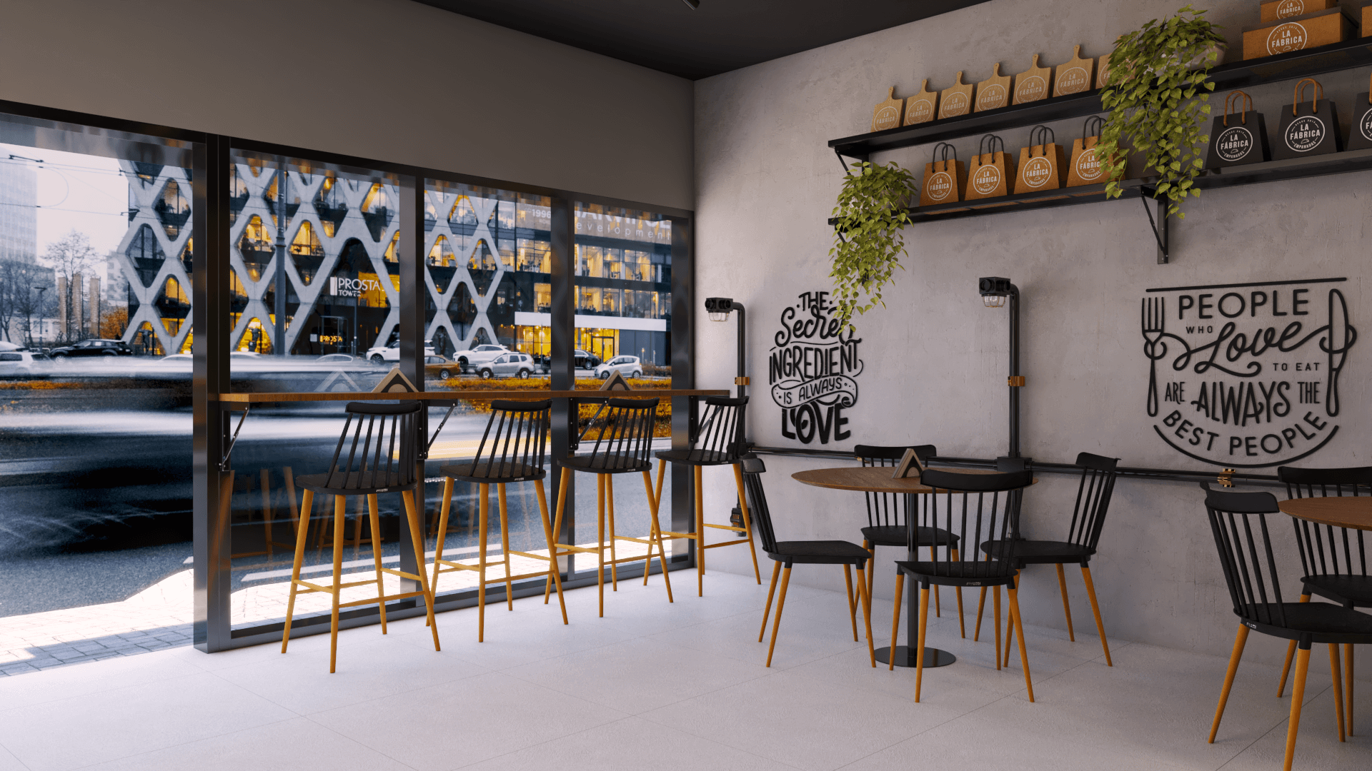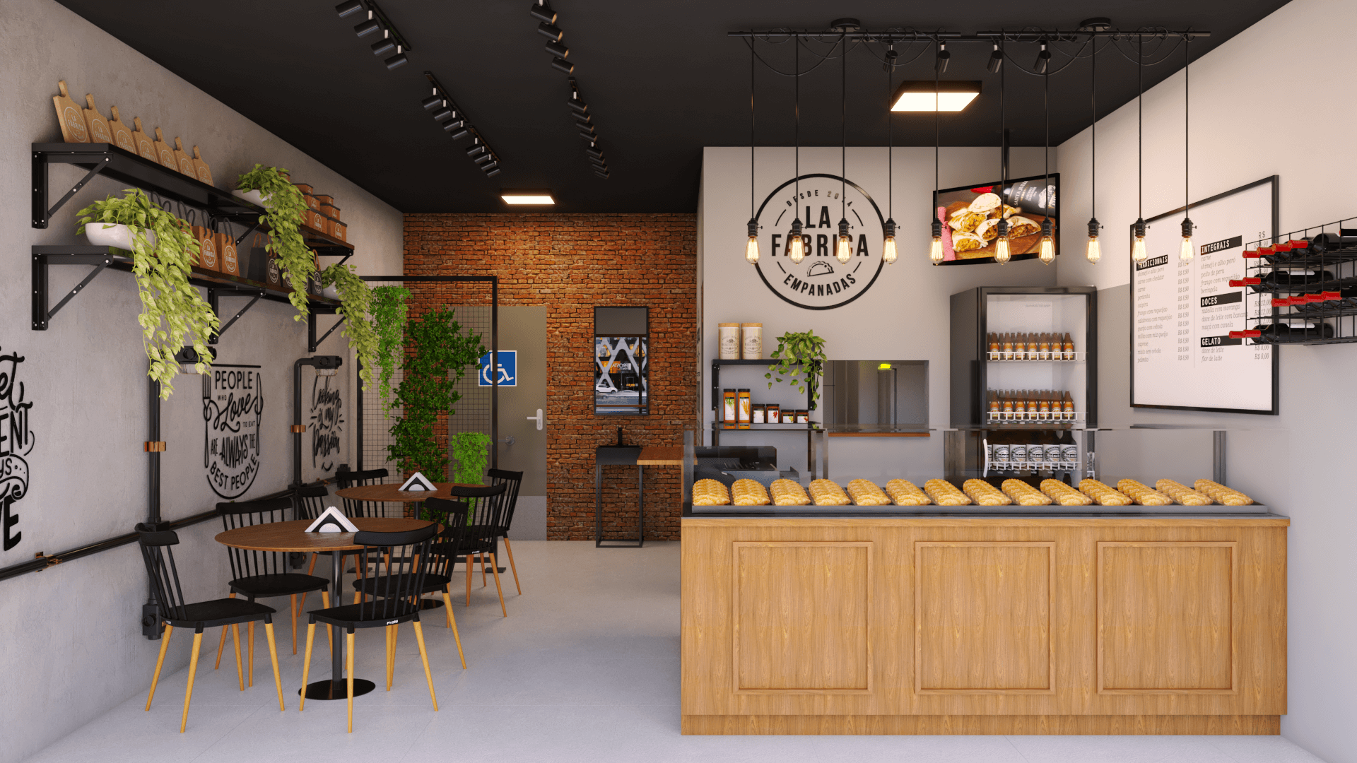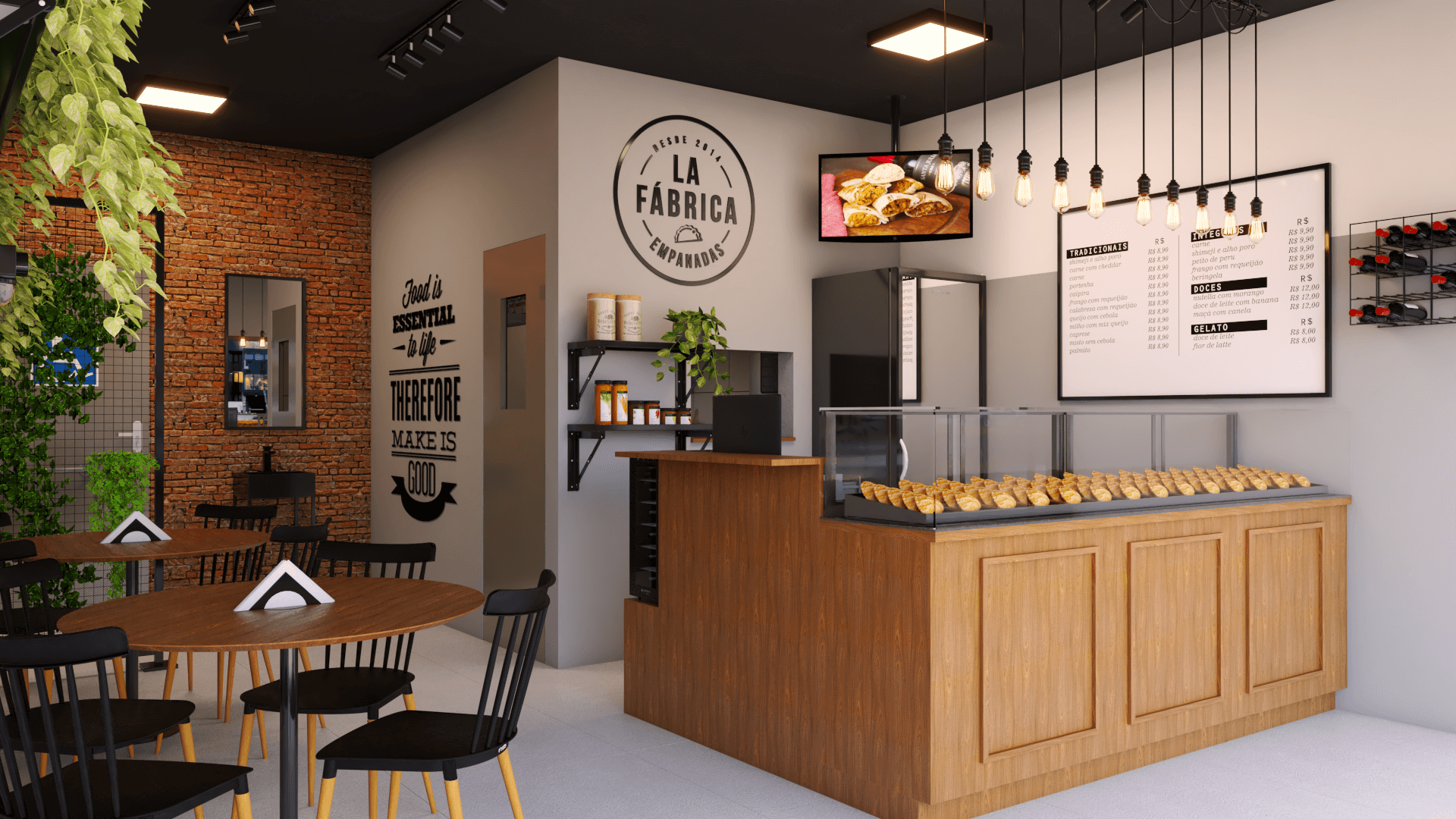 La Fabrica é uma casa de empanadas com temática industrial. Durante seu processo de formatação de franquias, passou por uma estruturação arquitetônica que definiu o conceito arquitetônico dos seus dois tipos de modelo de negócio: salão e quiosque.