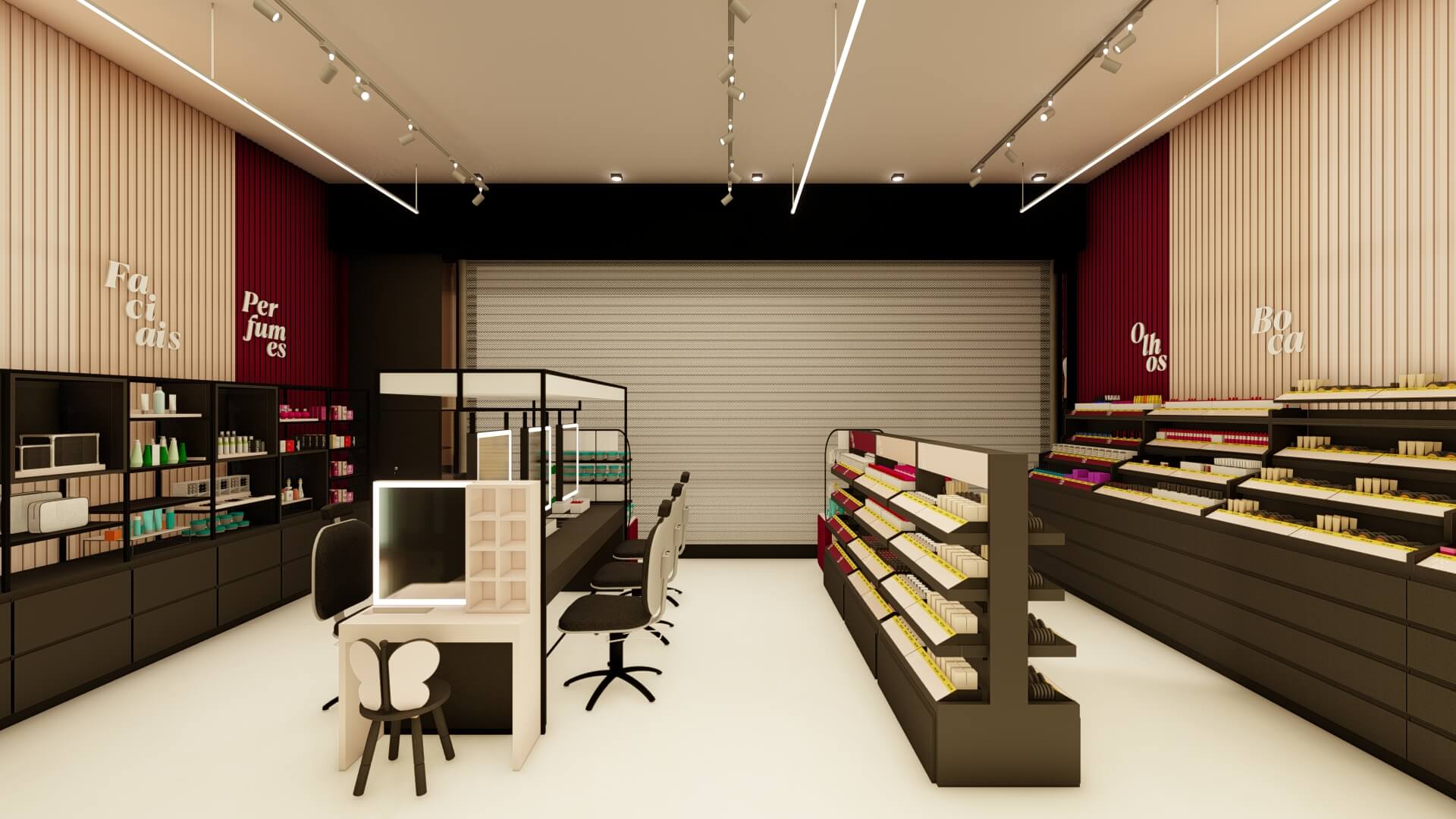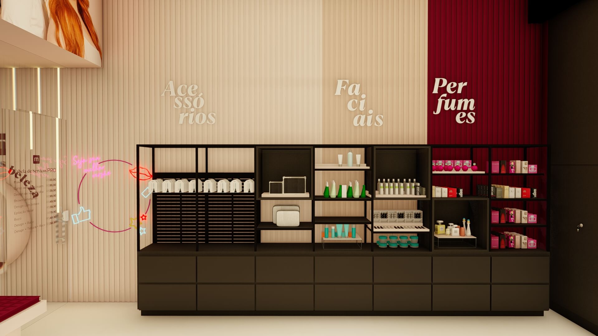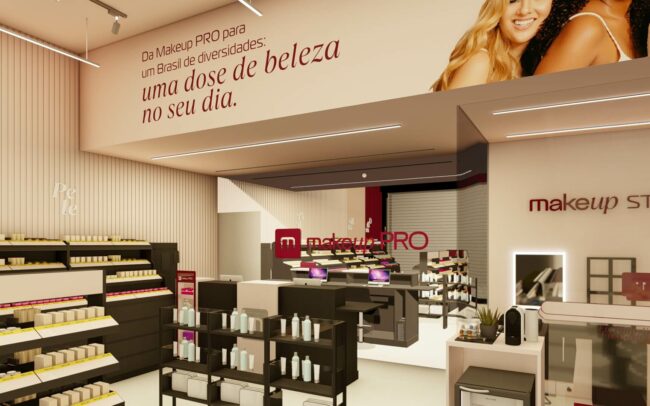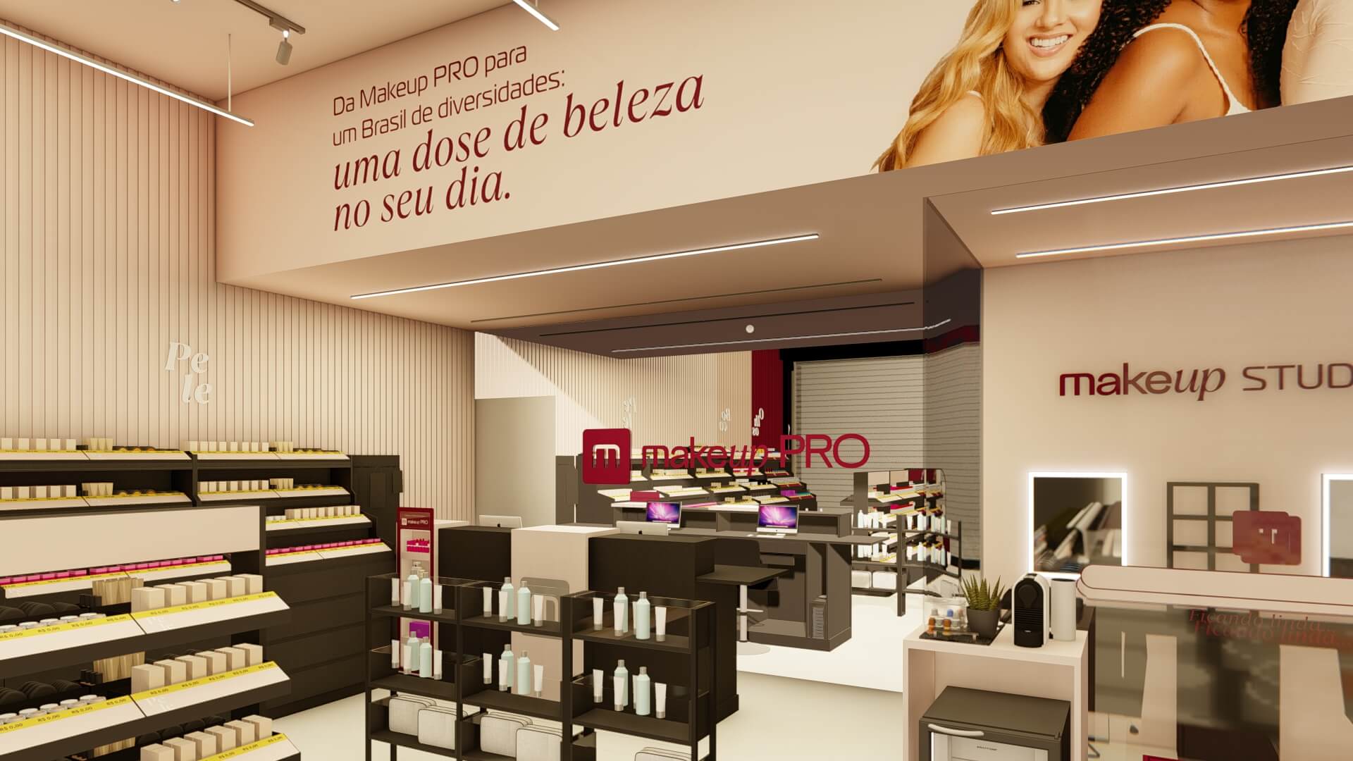 A MakeUp Pro é uma loja de maquiagens e beleza que possui uma experiência de compra e atendimento diferenciada. A marca nasce como franquia e o projeto arquitetônico foi desenvolvido para potencializar a expansão do negócio.