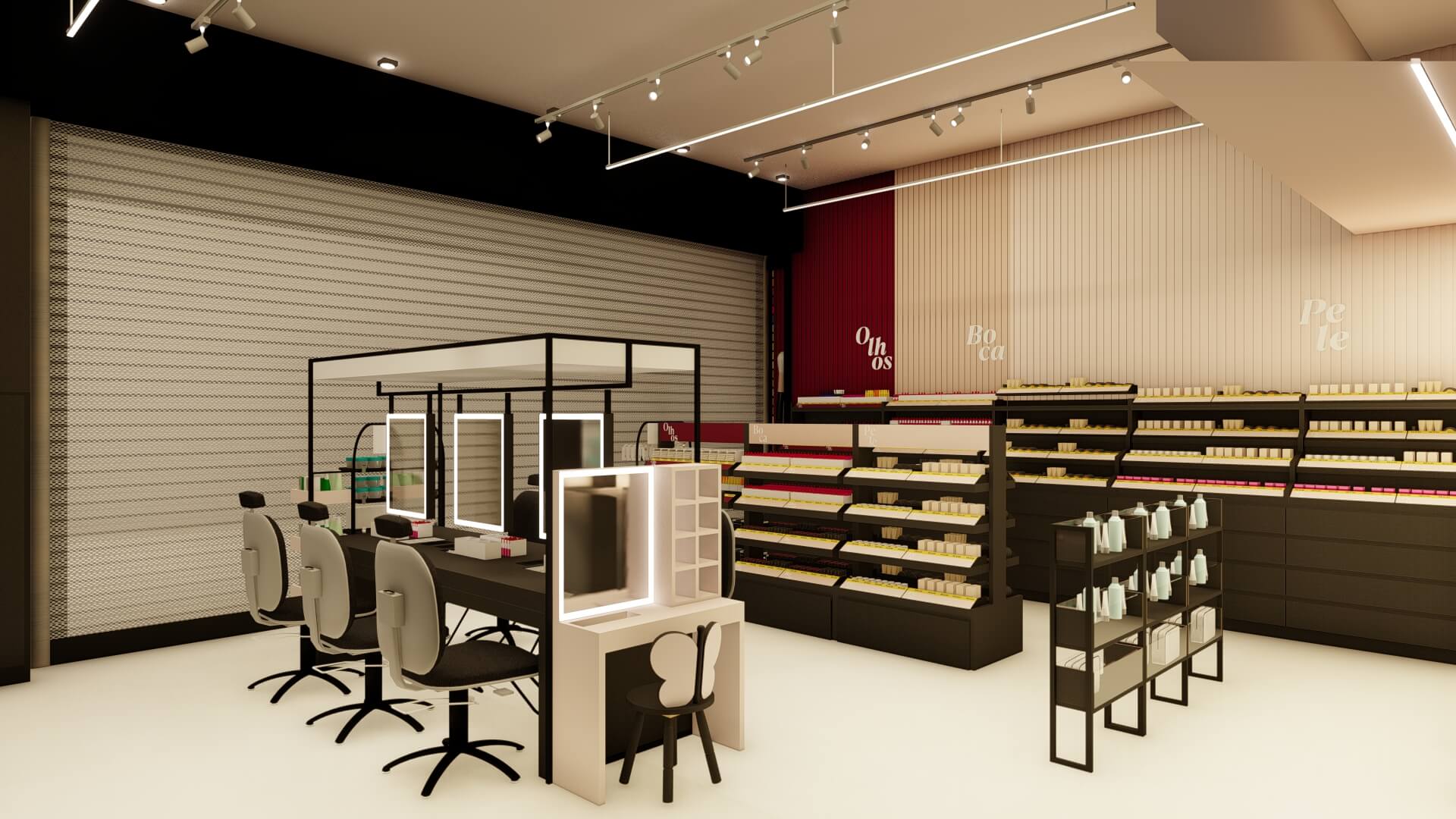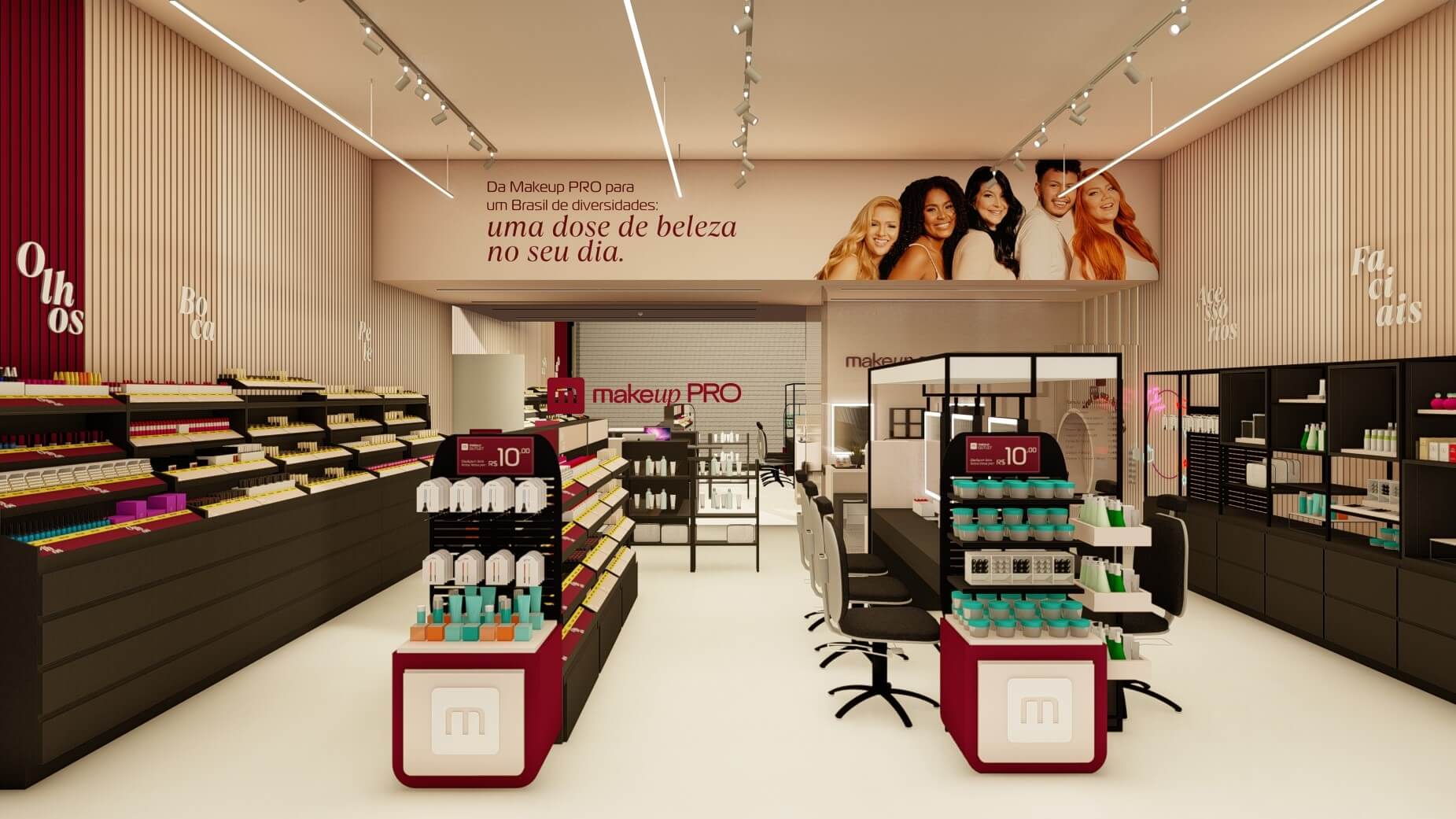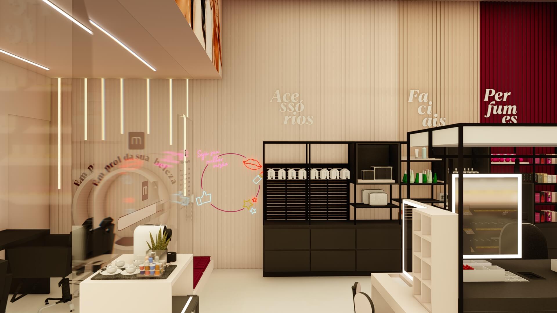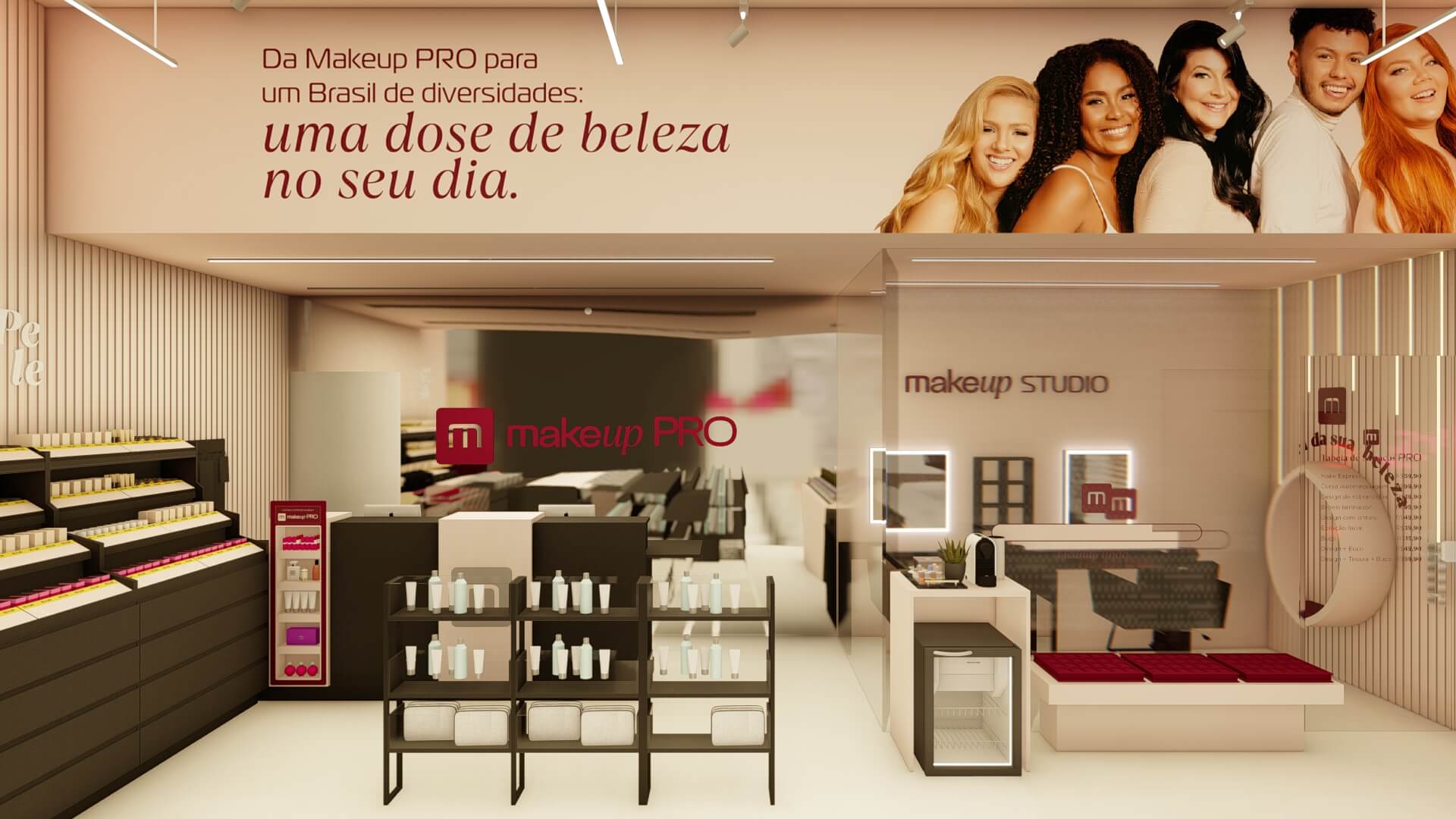 A MakeUp Pro é uma loja de maquiagens e beleza que possui uma experiência de compra e atendimento diferenciada. A marca nasce como franquia e o projeto arquitetônico foi desenvolvido para potencializar a expansão do negócio.