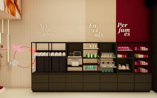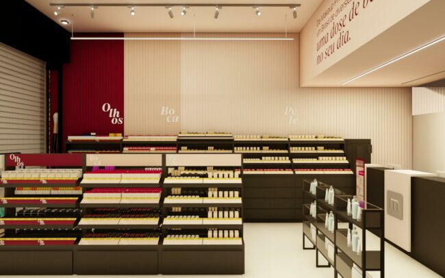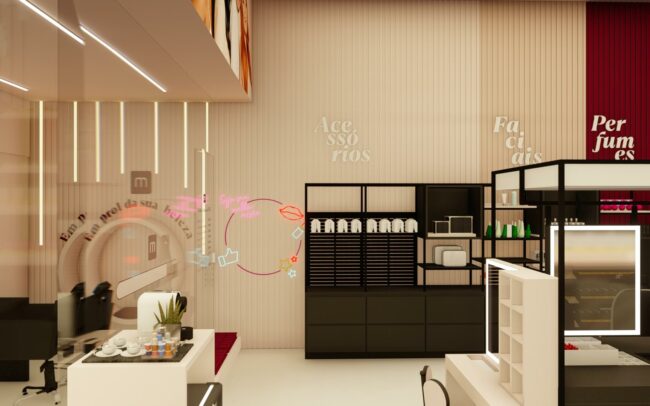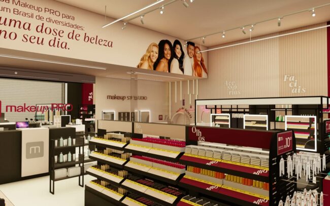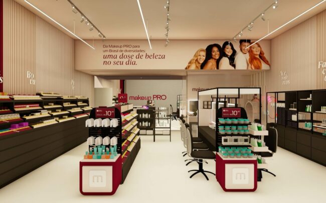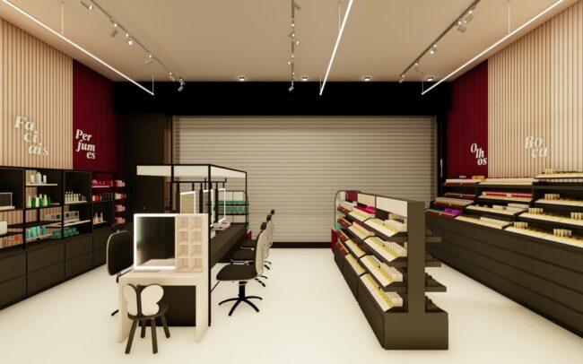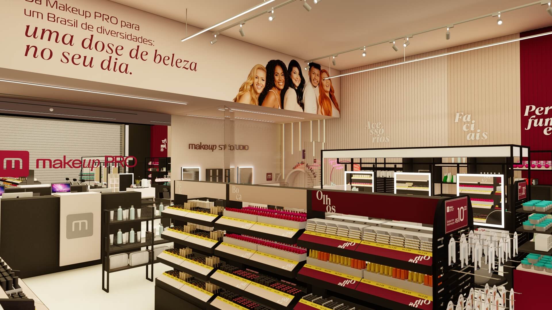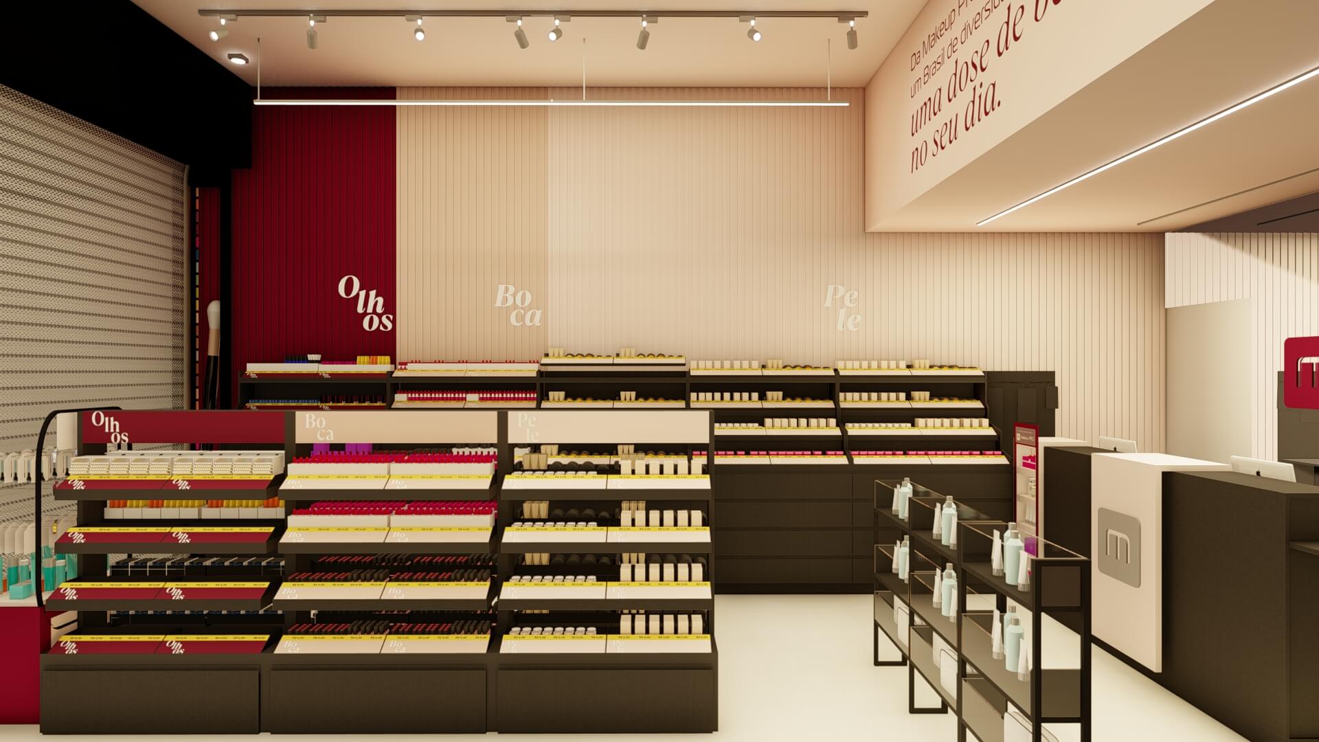 A MakeUp Pro é uma loja de maquiagens e beleza que possui uma experiência de compra e atendimento diferenciada. A marca nasce como franquia e o projeto arquitetônico foi desenvolvido para potencializar a expansão do negócio.