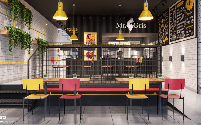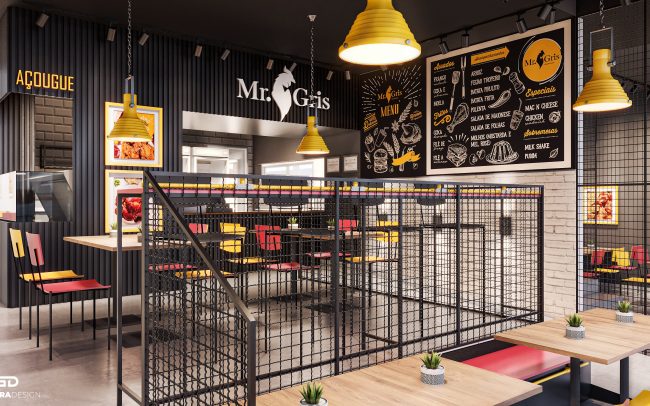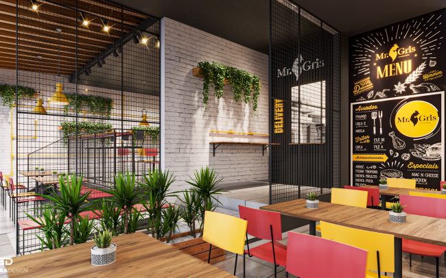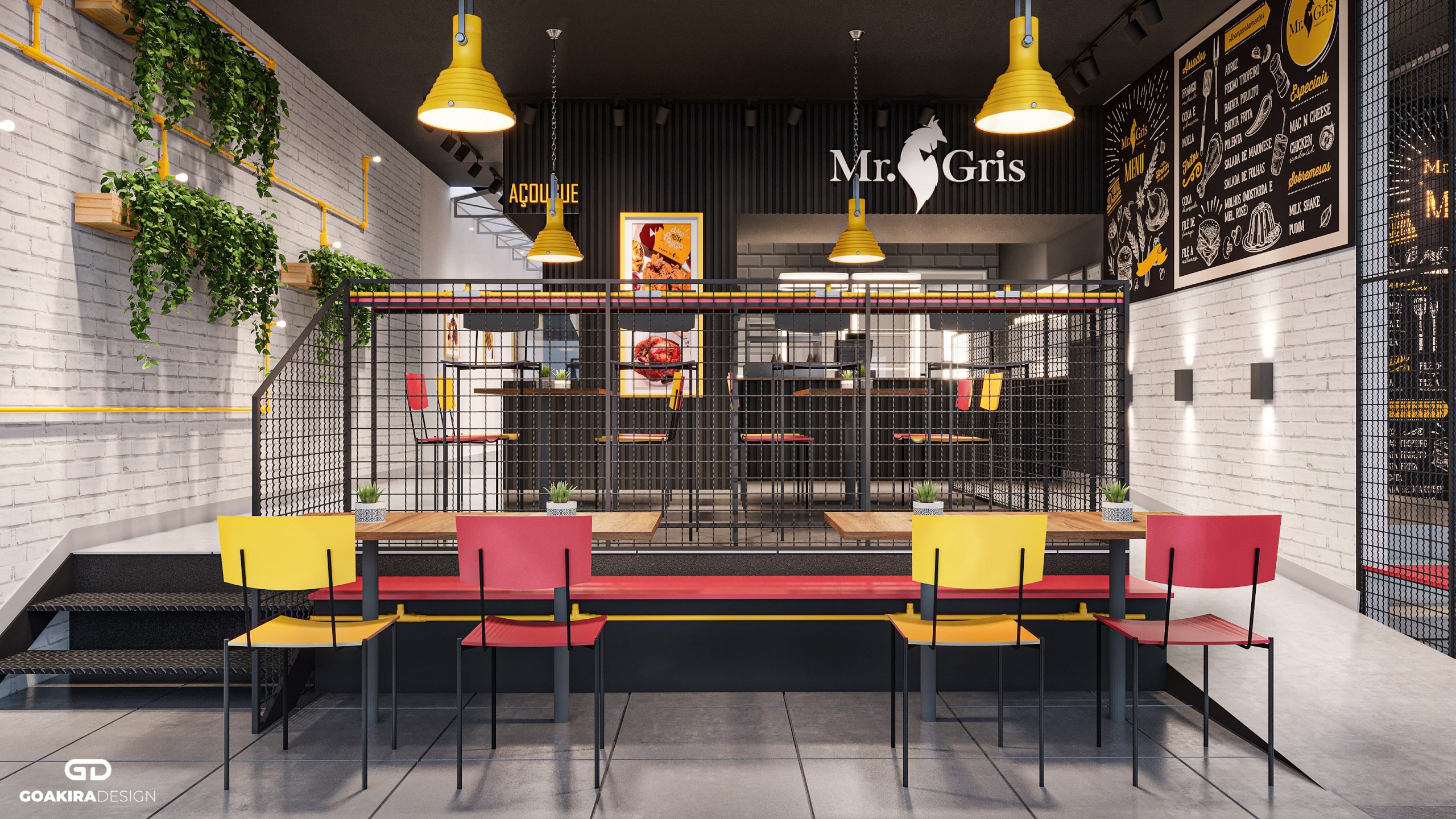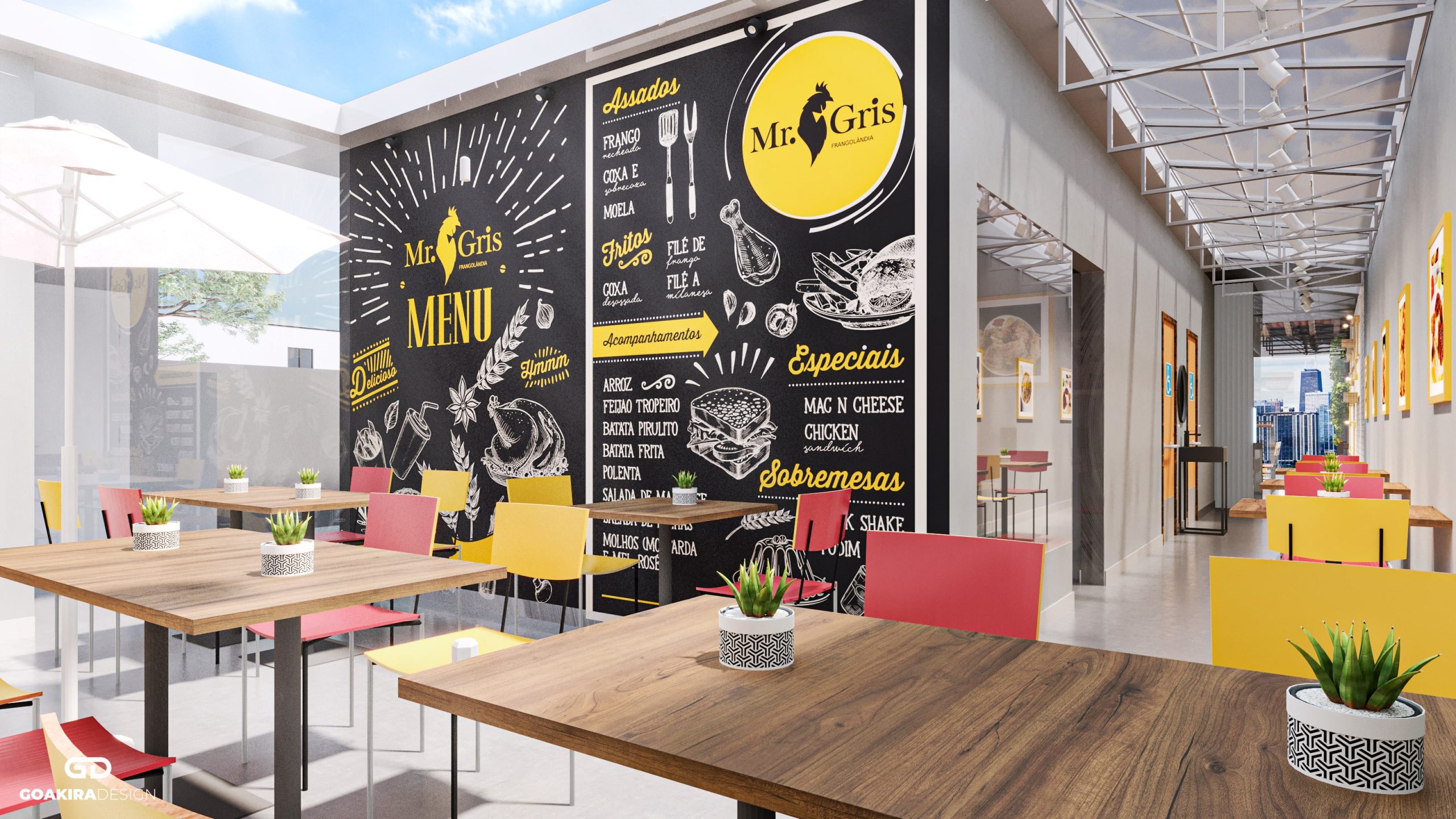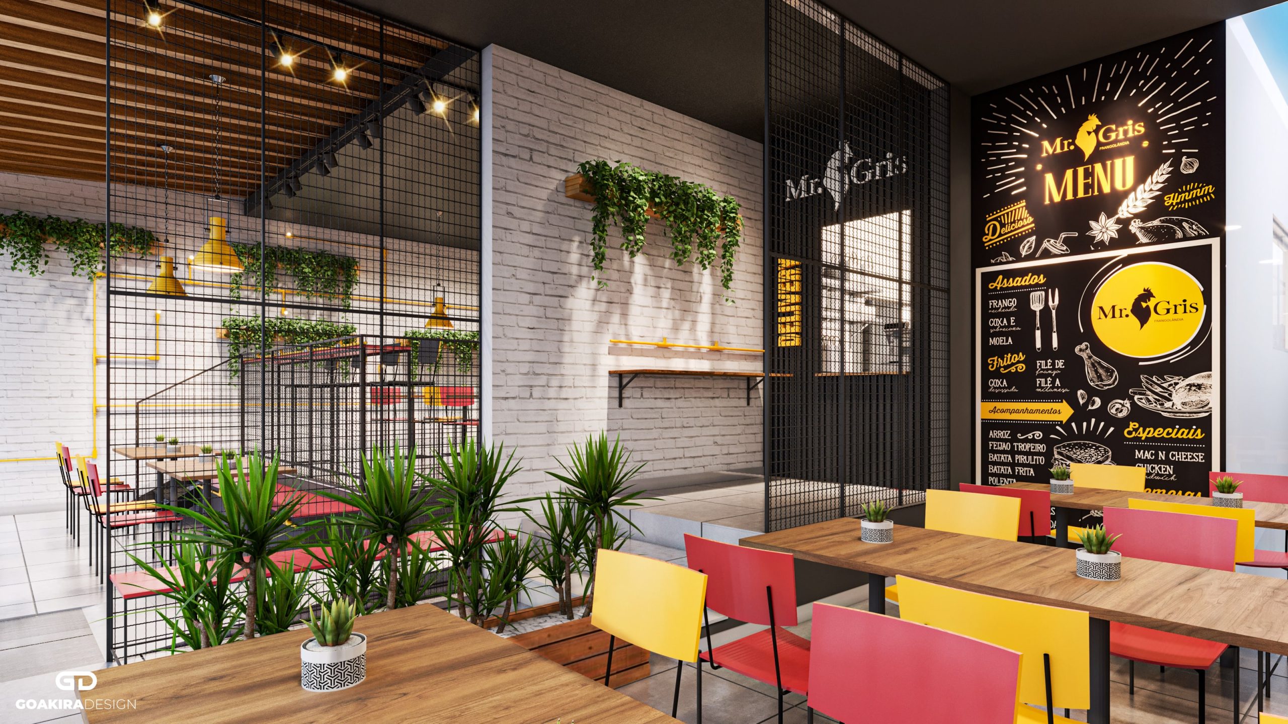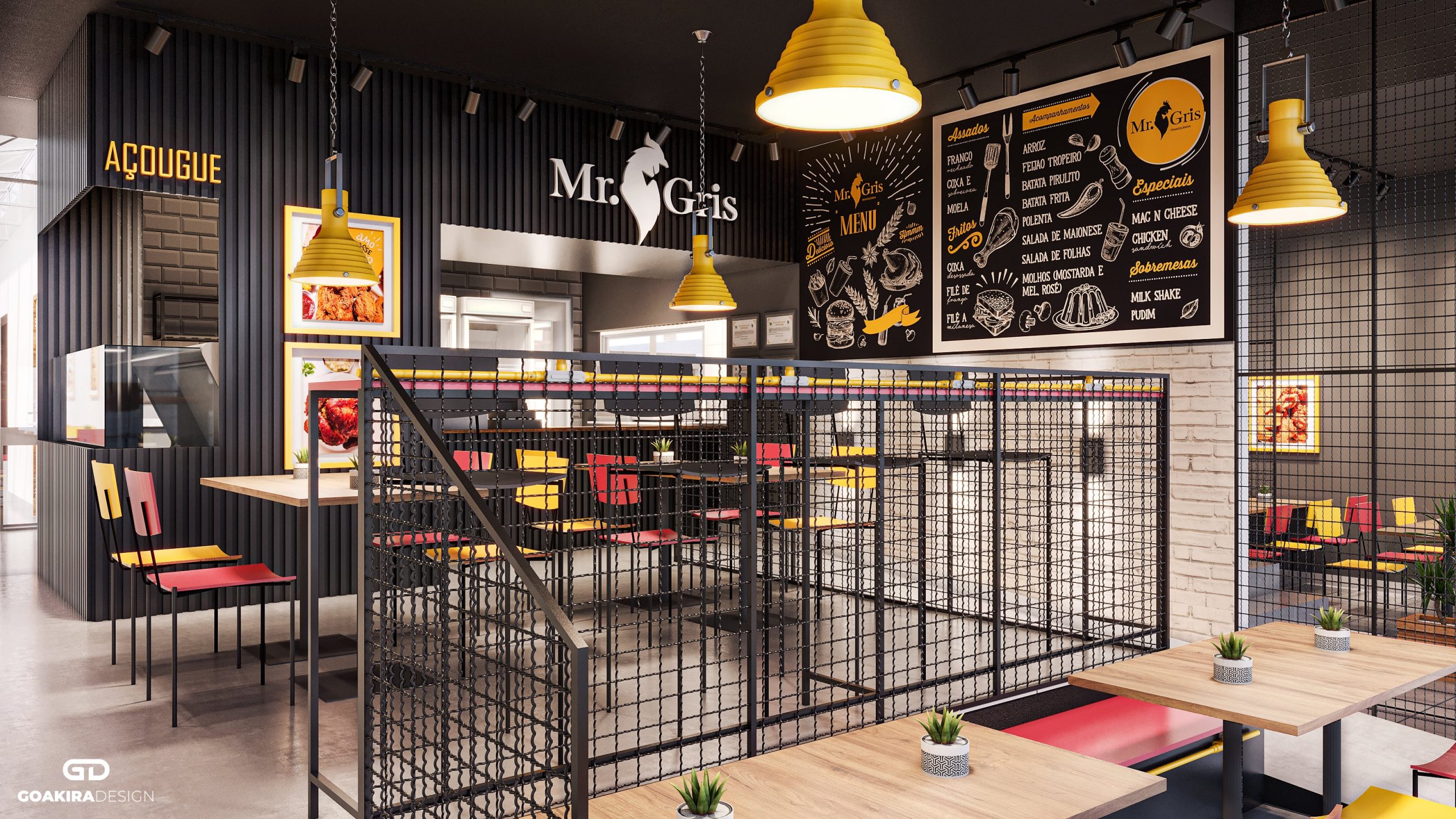 Mr. Gris Frangolândia é referência em fast food de frangos na cidade de Jaboticabal, interior de São Paulo. Com ambiciosos planos de expansão, confiaram na Goakira Design para desenvolver o projeto piloto da sua primeira unidade com salão. O projeto conta a transformação de uma antiga residência em um espaço comercial cheio de identidade que prepara a marca para a futura replicação do modelo.