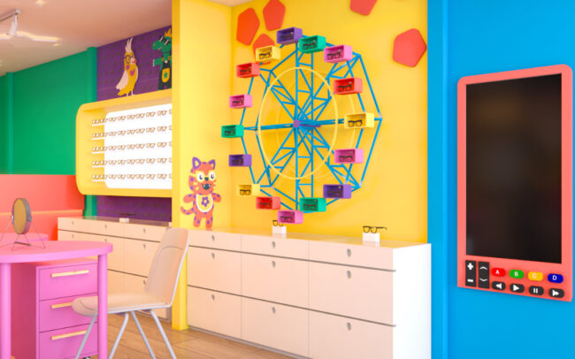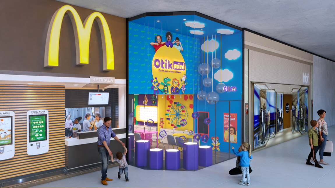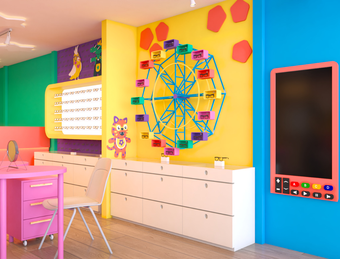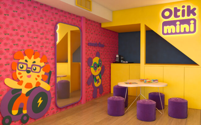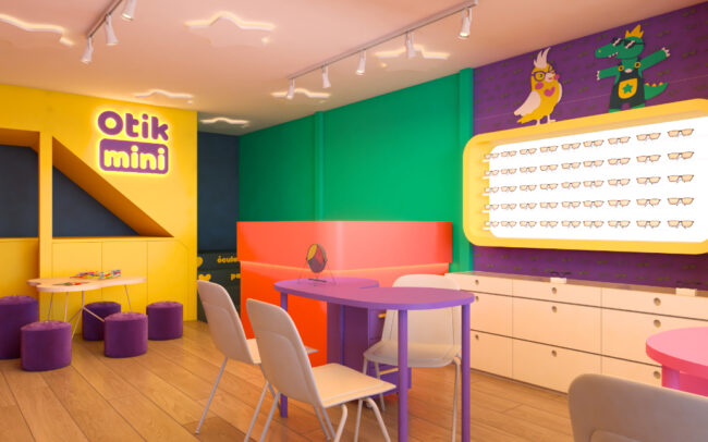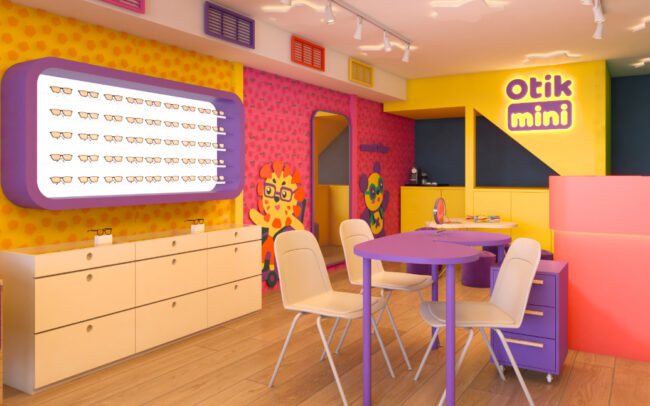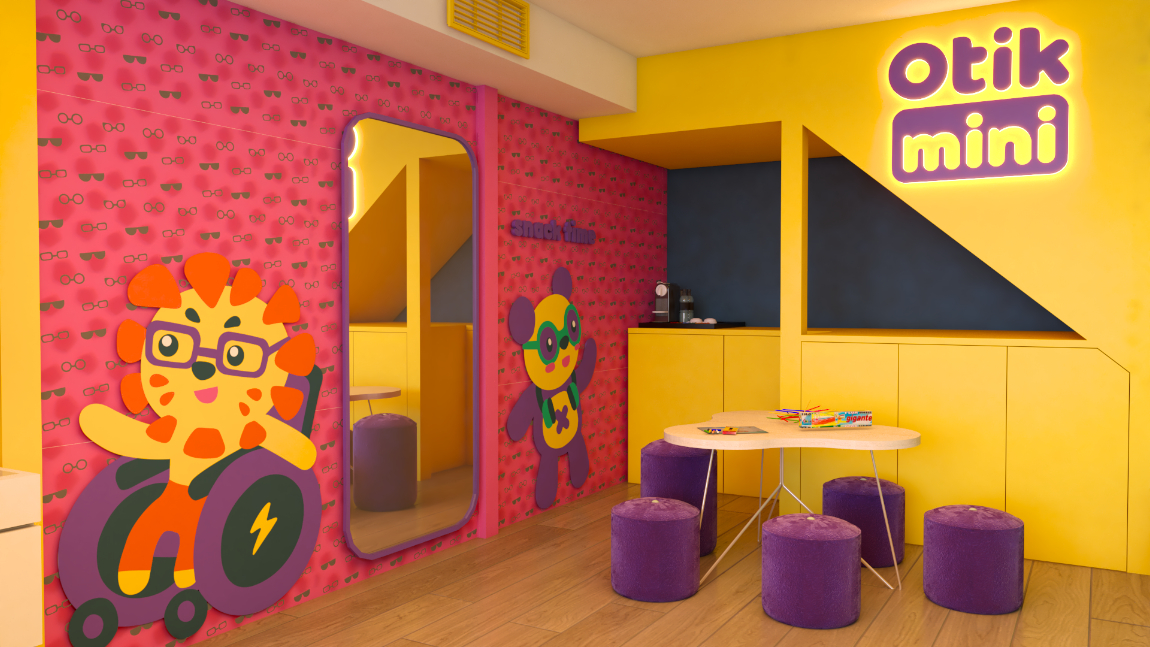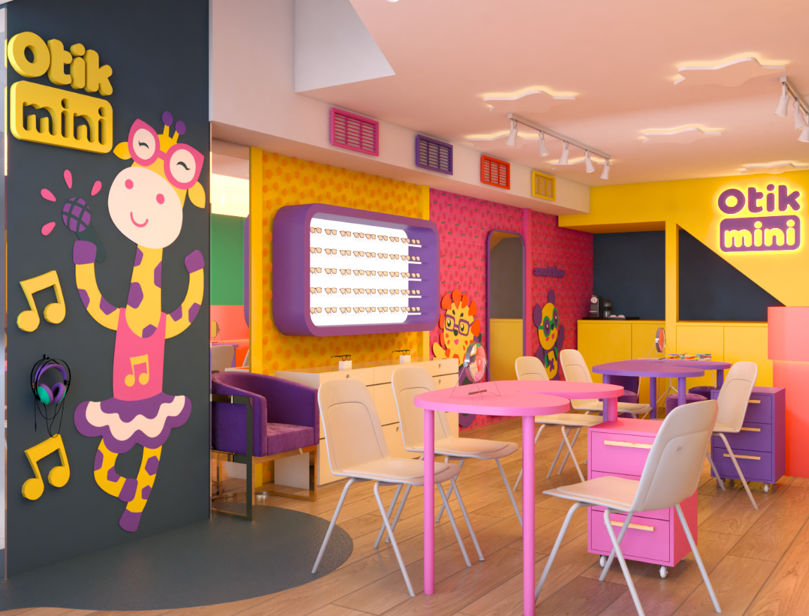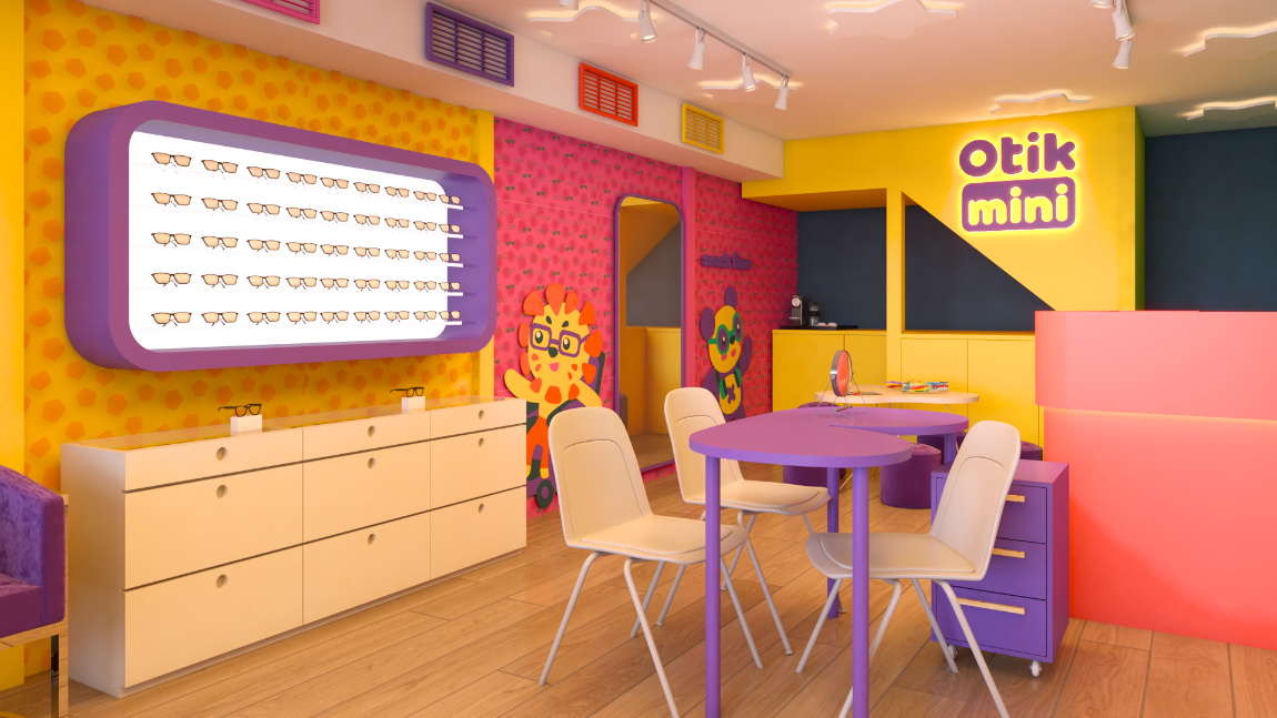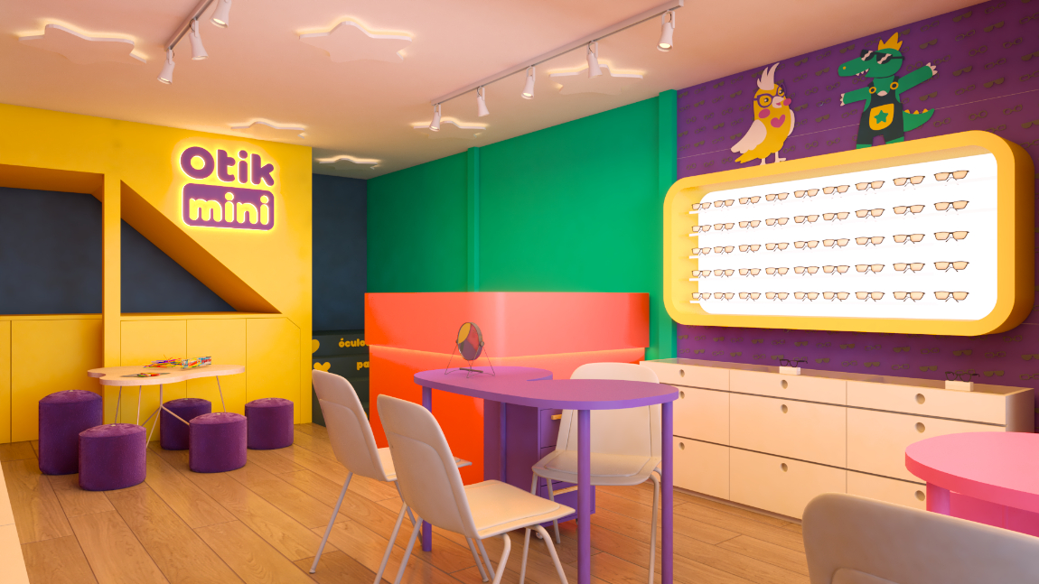 A arquitetura da Otikmini foi cuidadosamente projetada para oferecer uma experiência única aos seus mini clientes. O design arquitetônico busca transmitir a essência da marca, combinando elementos lúdicos com um ambiente vivo e alegre. Além disso, a loja Otikmini valoriza a interatividade. Espaços são destinados para atividades como experimentação de produtos e trasnforma a experiencia de comprar o primeiro óculos em uma memória feliz.